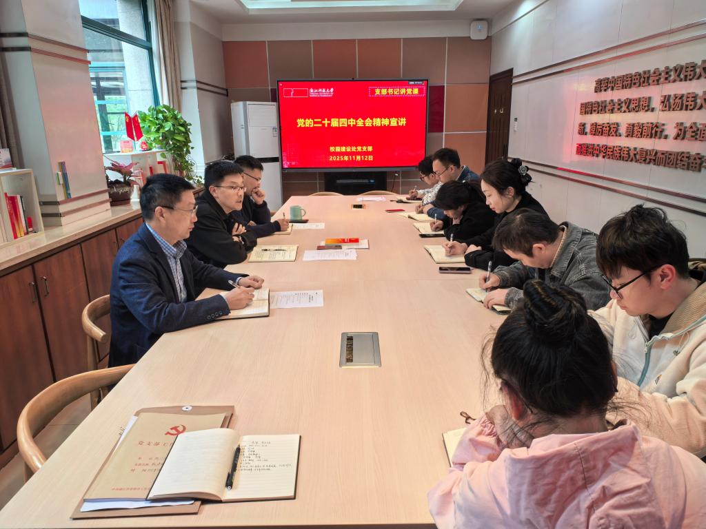 11月12日下午,校园建设处党支部书记方晓明以“党的二十届四中全会精神宣讲”为主题为全处老师上专题党课,开展专题学习活动。