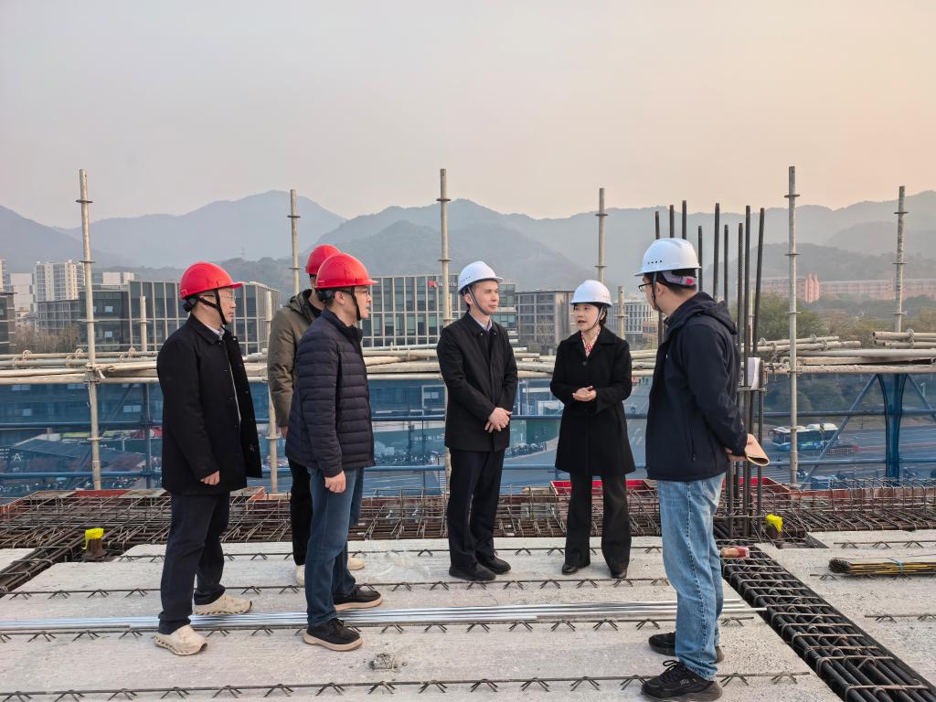 在“中德科创中心”“后勤综合楼”项目现场,陈建孟一行听取校建处、施工单位、监理单位关于工程进度、技术难点、质量控制节点等项目建设情况汇报,详细检查了工程质量、进度,施工现场消防和安全文明施工等情况。